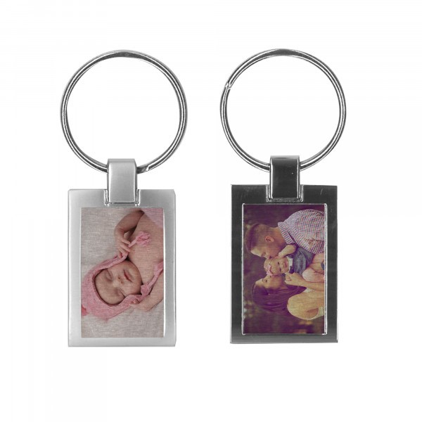 2 oldalas szögletes fényes fém kulcstartó – egyedi fényképpel és szöveggel